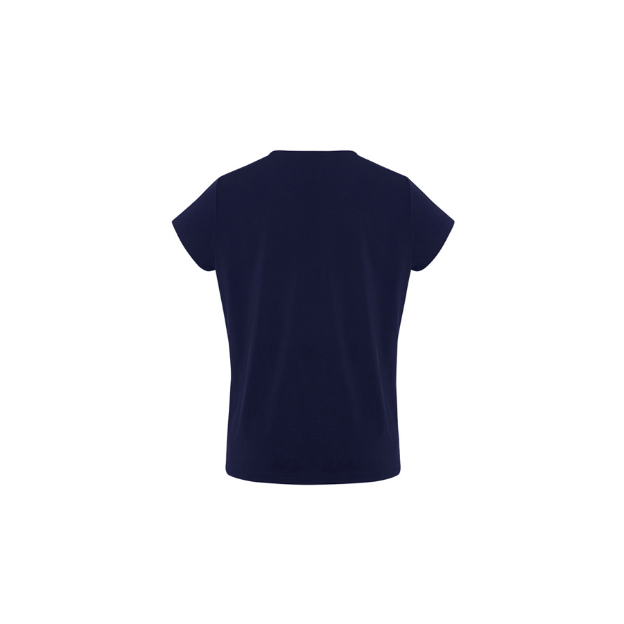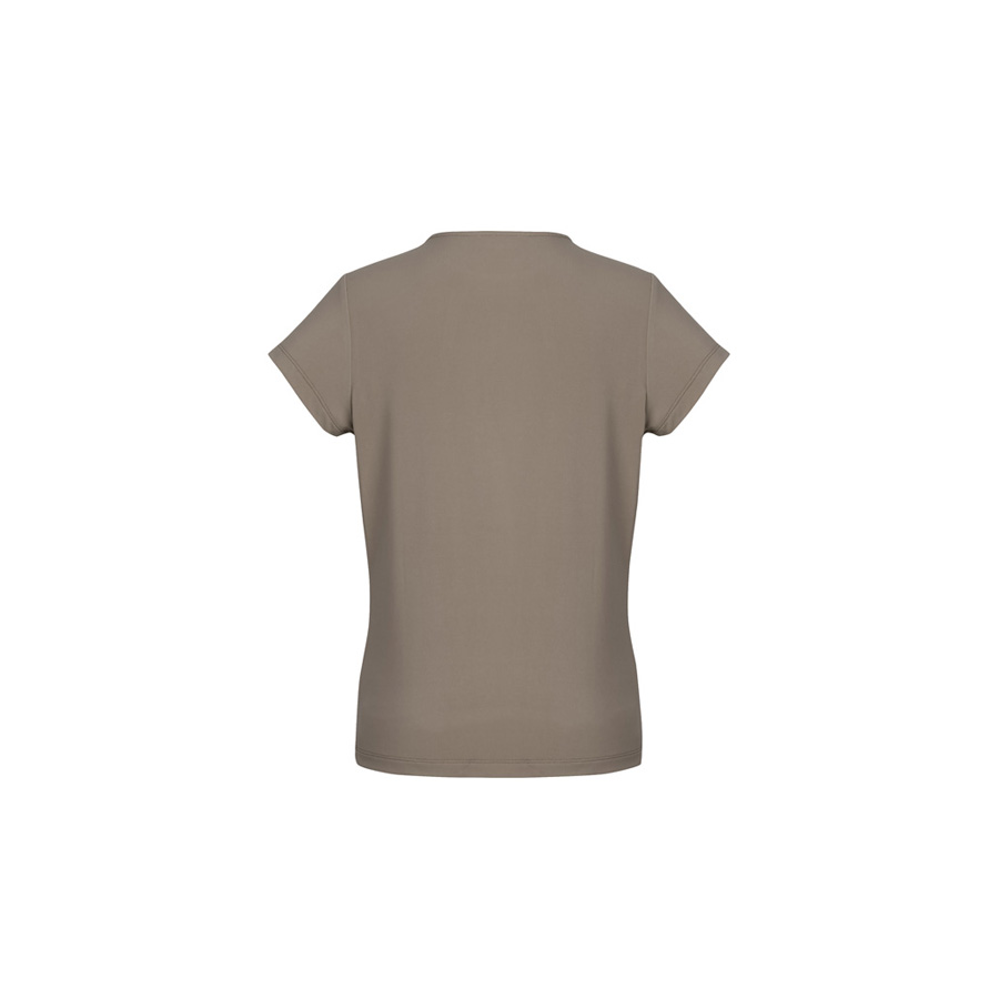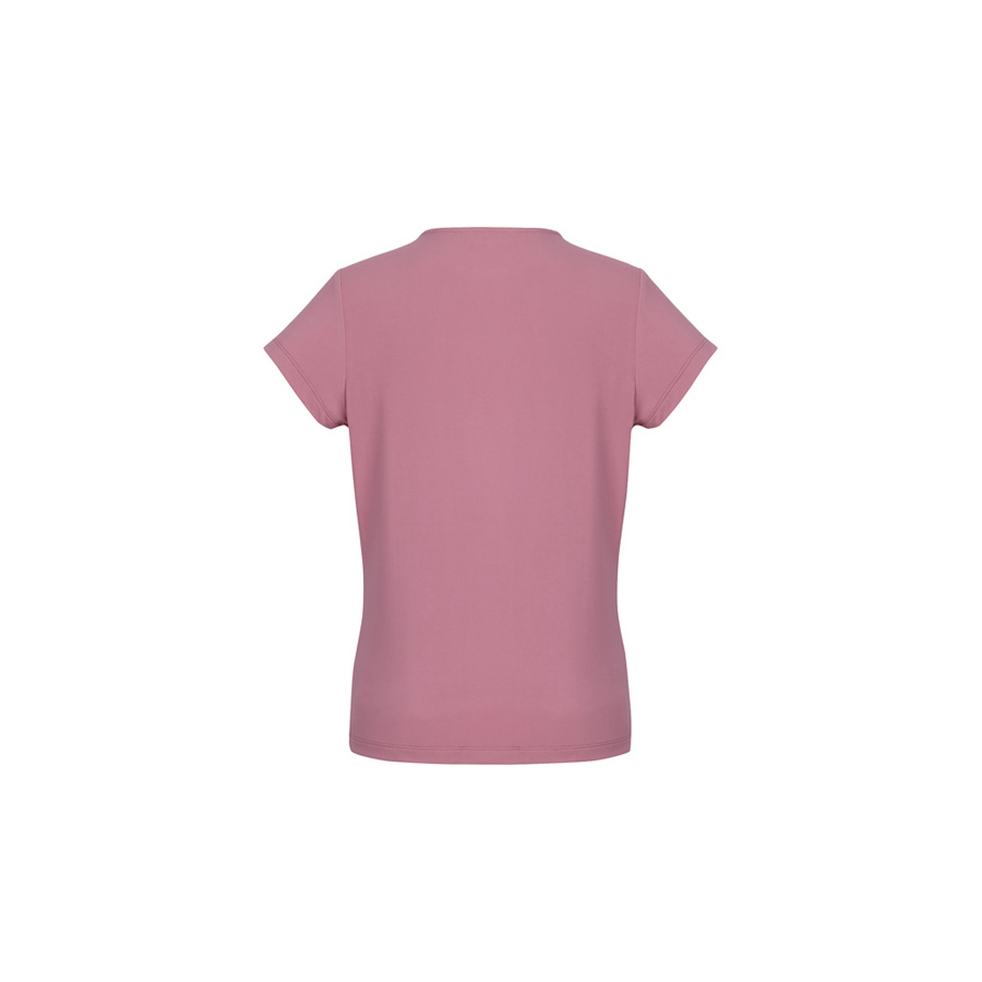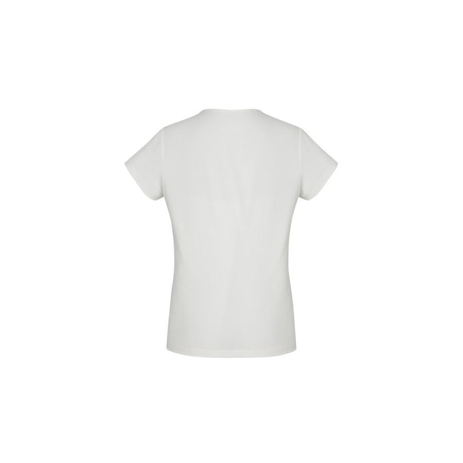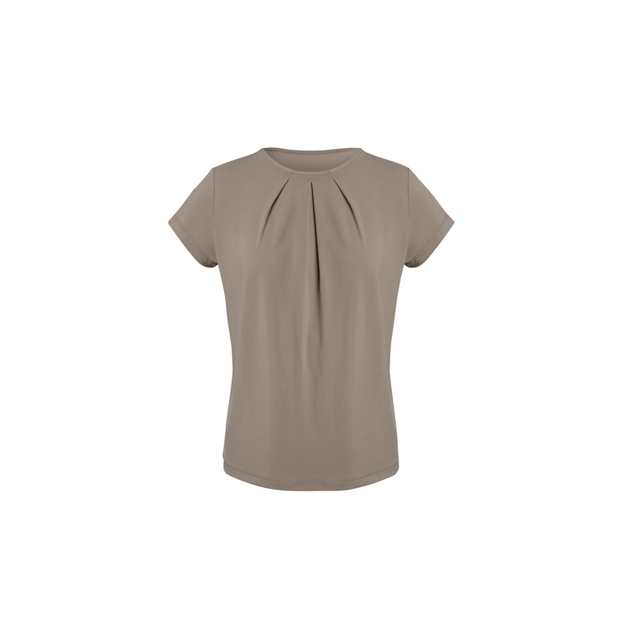 This short-sleeved style has a classic crew neckline with pleat details. Designed to be a semi-fitted top. Wear yours tucked in or out.