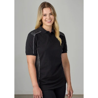 Sizes: XXS – 5XL; Extras: ; Fabric: Main: 52% Cotton, BIZ ECO 48% Recycled Polyester; Side Panels: 100% Recycled Polyester Mesh; BIZ COOL Pique Knit; 210 GSM; UPF Rating 50+; Features: Unisex fit, Soft, dry handle pique knit fabric, Knitted rib collar, Mesh contrast colour body and shoulder panels, Silver piping on body seams, Button through placket, Includes loose pocket;
