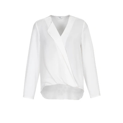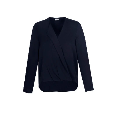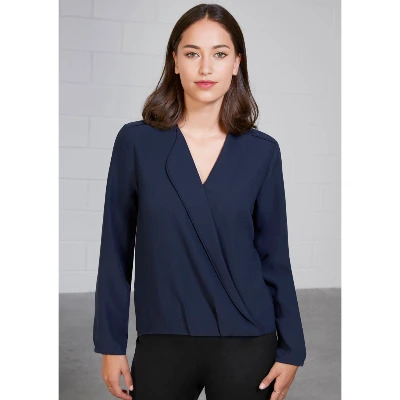 Sizes: 6 – 26; Extras: ; Fabric: Easy Care 100% Mechanical Stretch Polyester; Features: Sophisticated fashion forward design elevates your uniform,Soft petal-shaped lapel creates elegance at the neckline,No button pop-over style with cross-over envelope front feature,Loose-fitting silhouette with extended back tail length,Designed to be worn un-tucked;