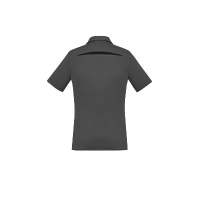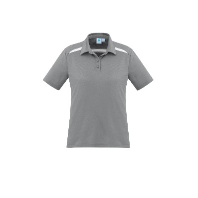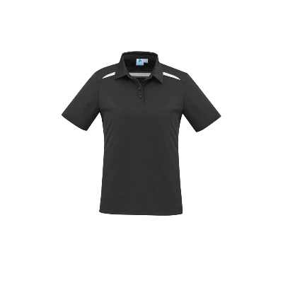 Sizes: 6 – 24; Extras: ; Fabric: 80% BIZ COOL Polyester, 20% Cotton back fabric,185 GSM,UPF rating – Excellent; Features: Breathable pique knit with cotton on the inside, feels cool and comfortable,Spliced shoulder and back contrast panels accents the design,Modern self fabric collar and button placket;