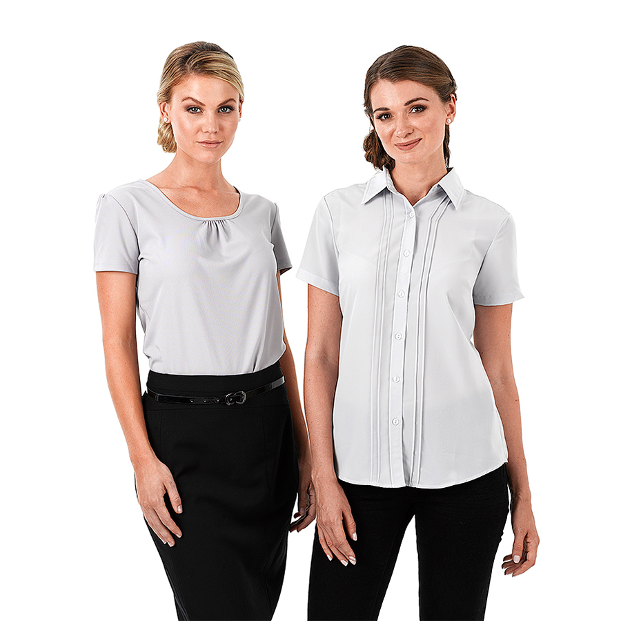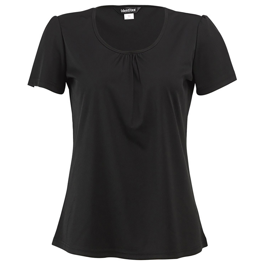 Ladies Easy Care Polyester Interlock Top 100% Polyester Interlock Top. crew neck with detail. set in gathered sleeve . 190gsm. easy care SIZE RANGE 8 – 26