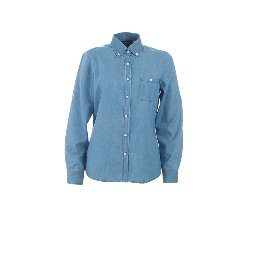 Ladies Long Sleeve Denim Shirt 100% Cotton – Indigo Denim. Button down collar. Single chest pocket with button SIZE RANGE 8 – 26