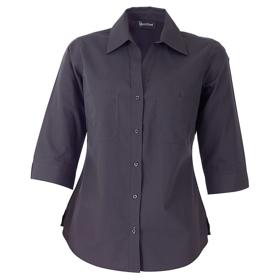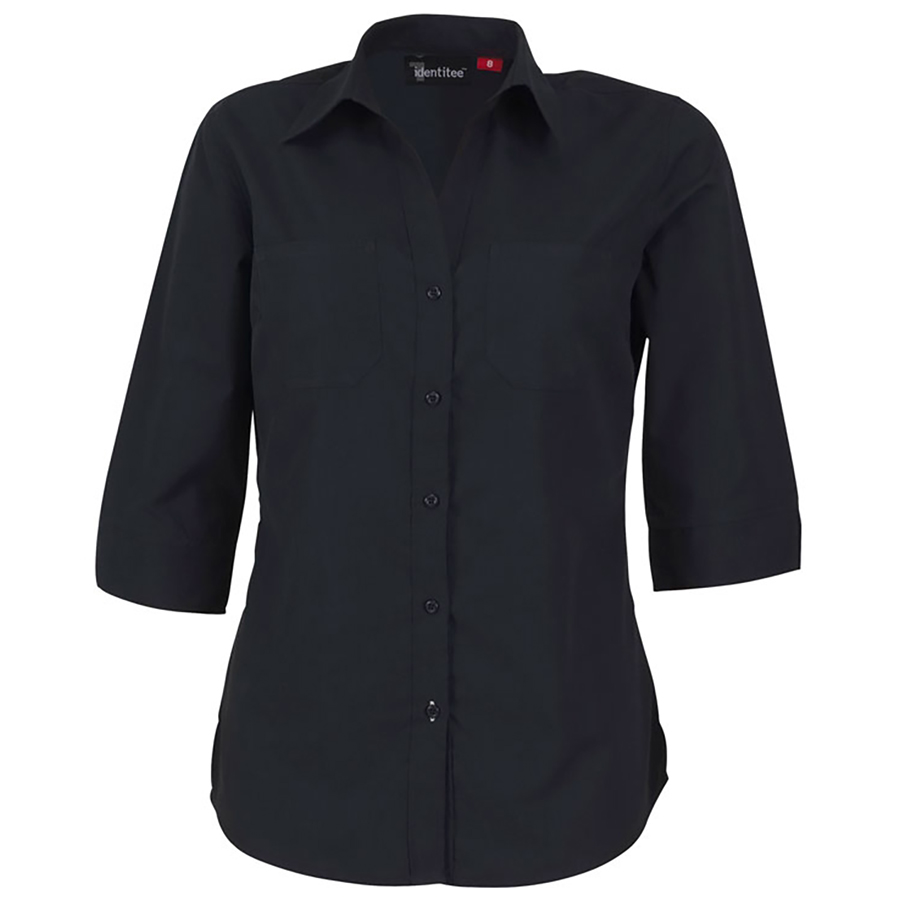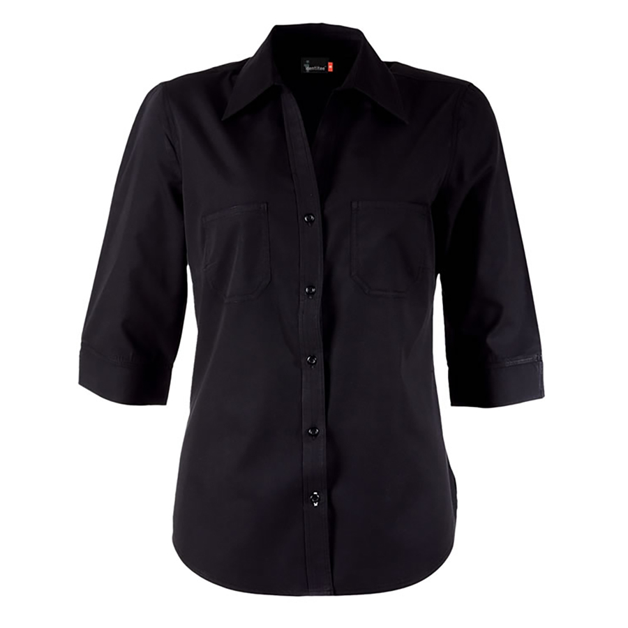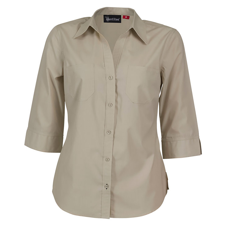 Ladies 3/4 Sleeve Ultra Cool Shirt with Twin Pockets 60% cotton 40% polyester. Peach finish. Slightly fitted. Twin pockets on chest. Curved hem front & back. Side splits SIZE RANGE 8 – 26
