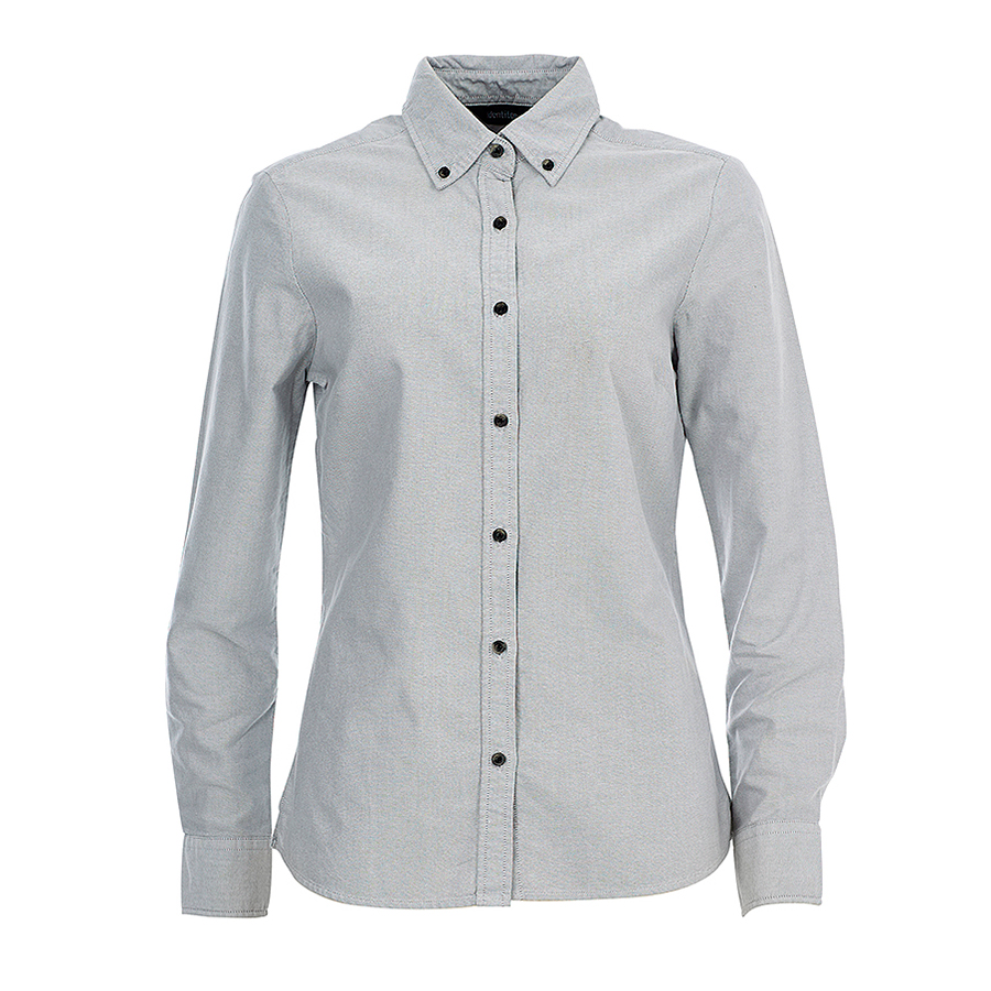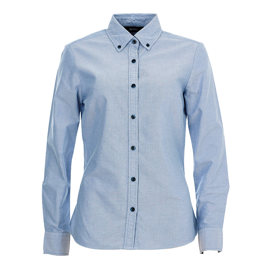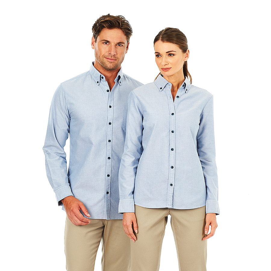 Ladies Long Sleeve Garment Washed Oxford Shirt 100% Cotton. Garment washed. Easy care. Button down collar. contrats buttons SIZE RANGE 8 – 26