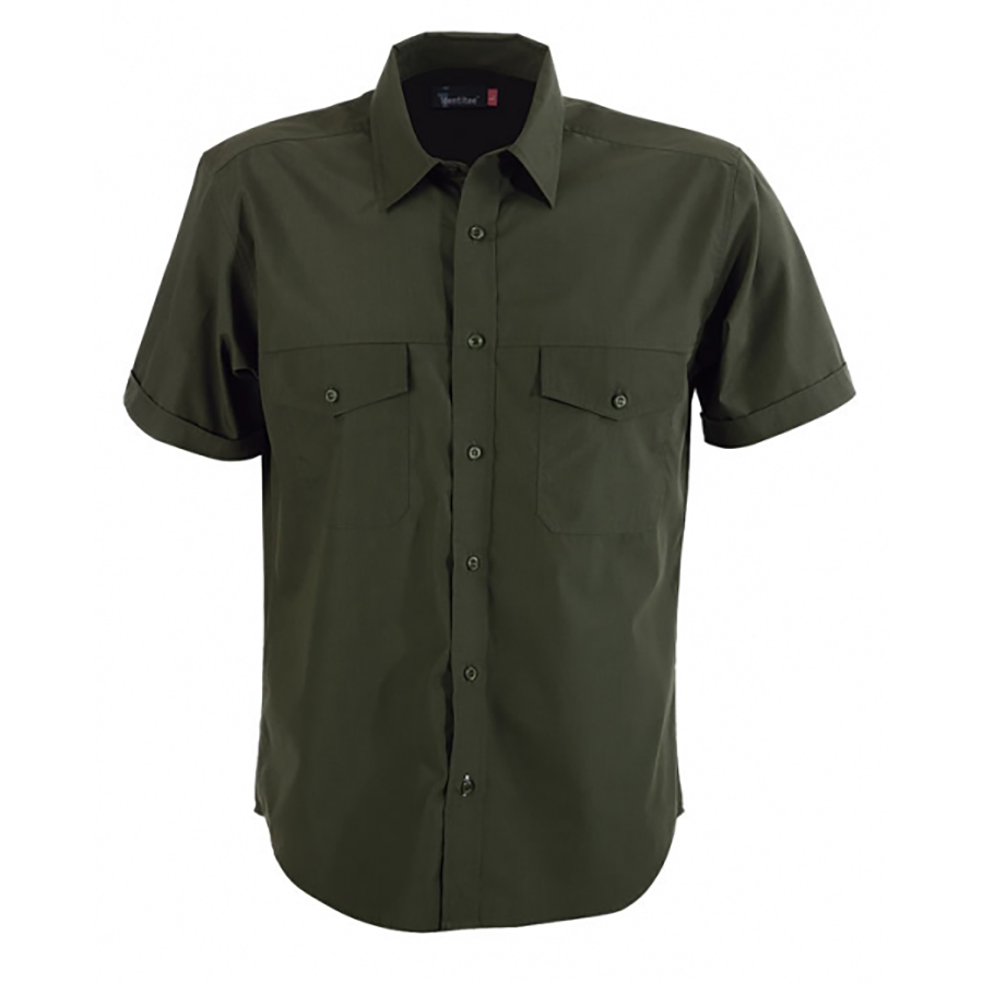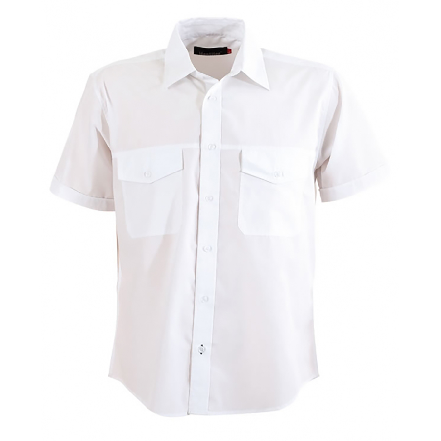 Mens Short Sleeve Ultra Cool Shirt with Twin Pockets 60% cotton 40% polyester. Peach finish. Slightly fitted. Curved hem front & back. Subtle seam & stitch detail. Placket edge sleeve SIZE RANGE S – 5XL