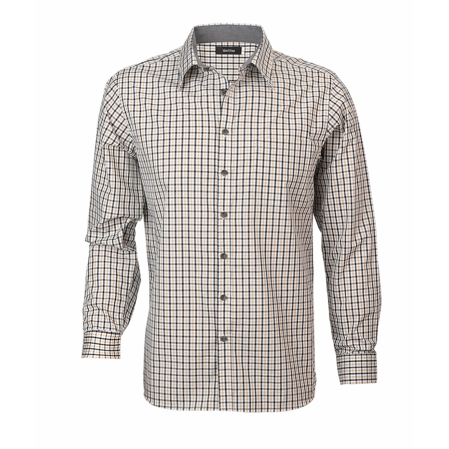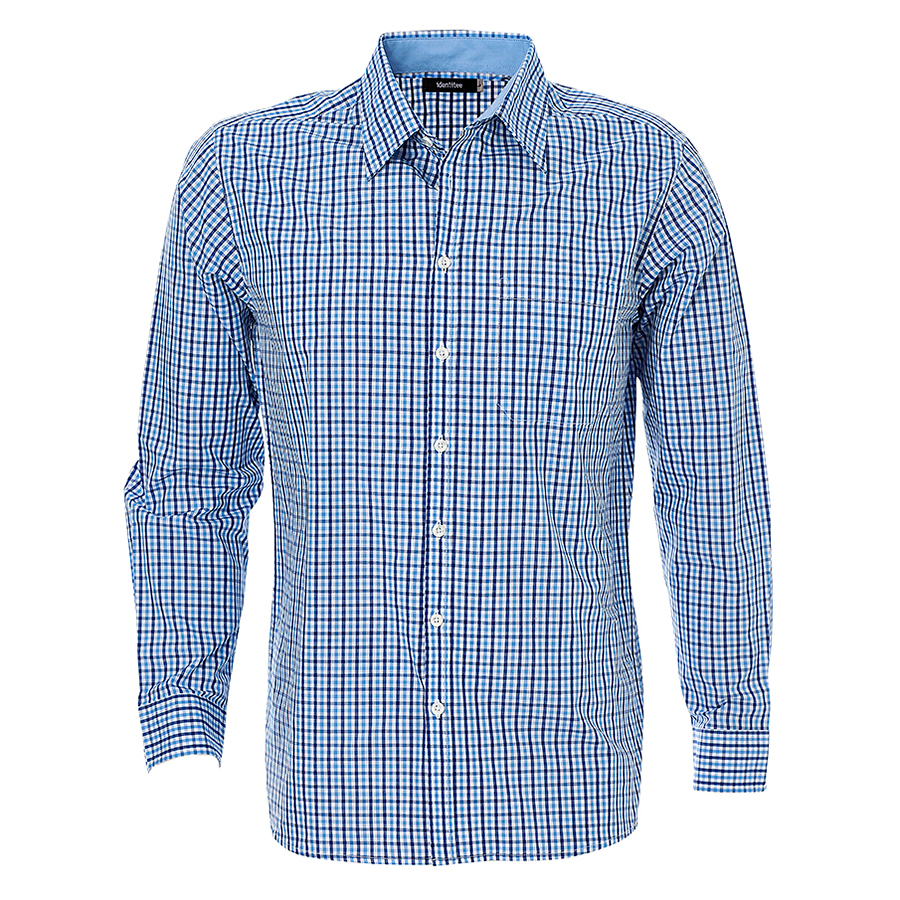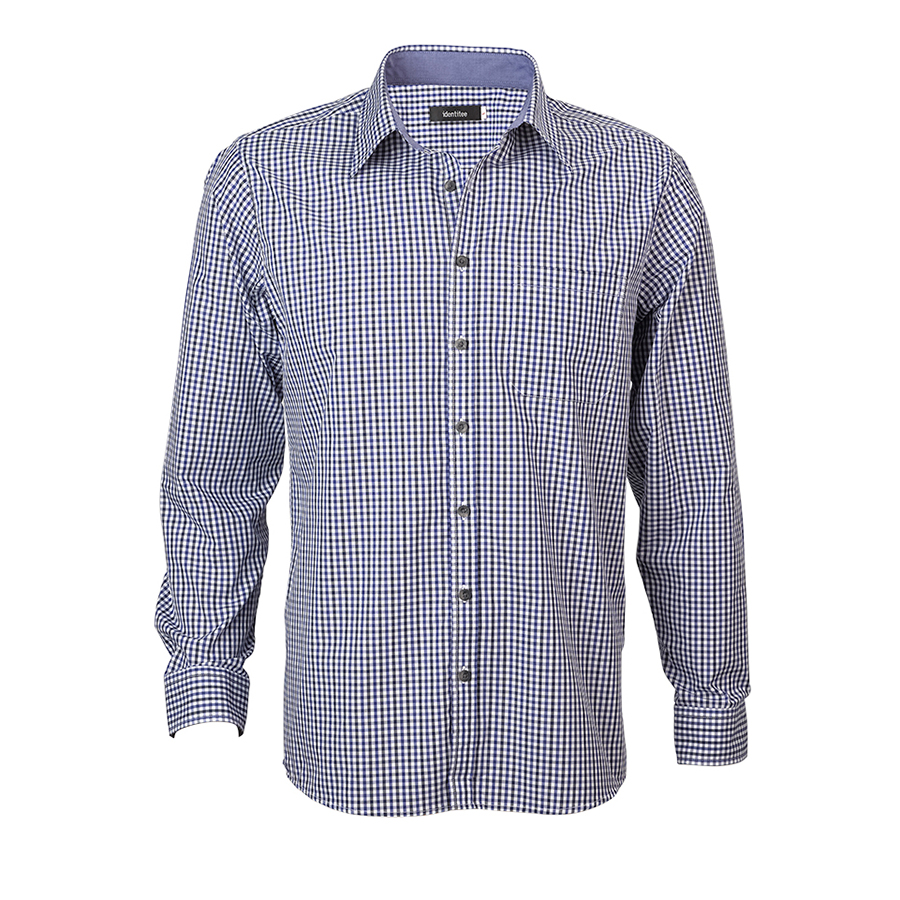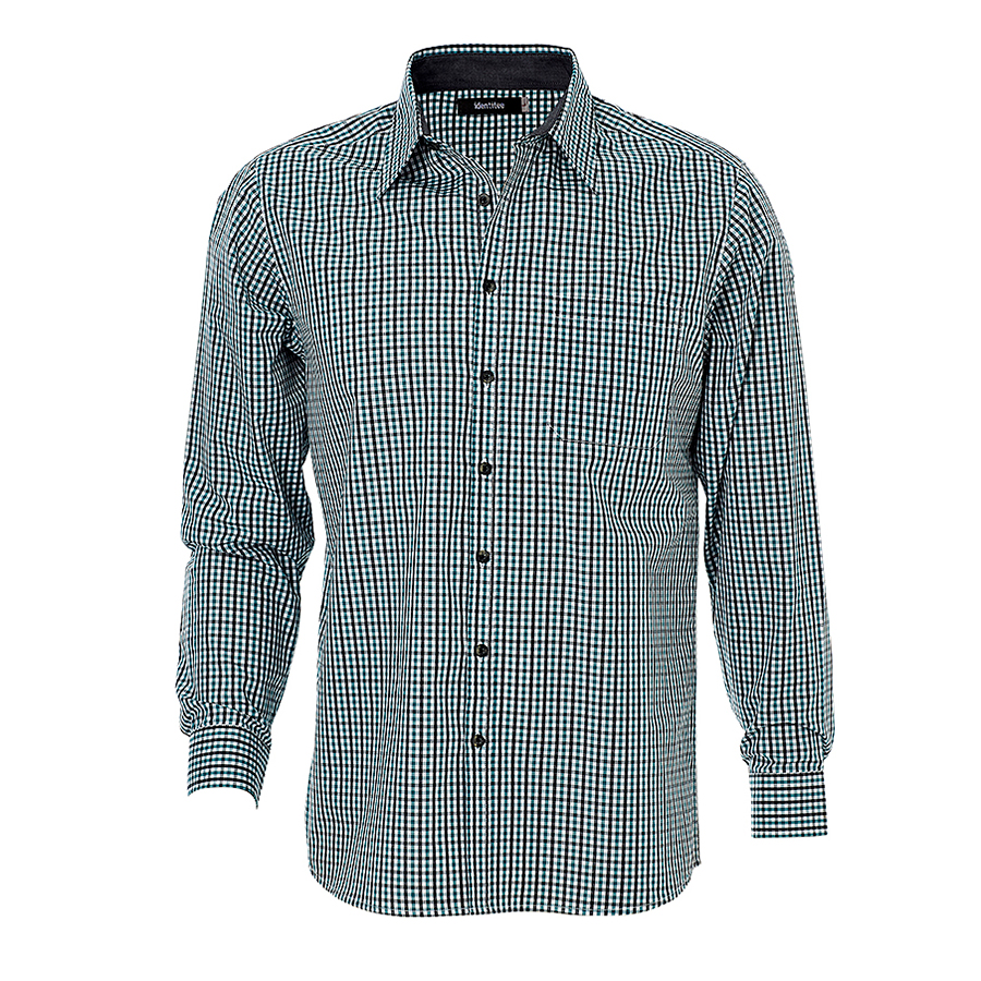 Men’s Long Sleeve Double Gingham Check Shirt 60% Cotton 40% polyester. Yarn dyed gingham check. Easy care. Contrast inner collar & inner cuff. Single pocket. Horn buttons SIZE RANGE S – 7XL