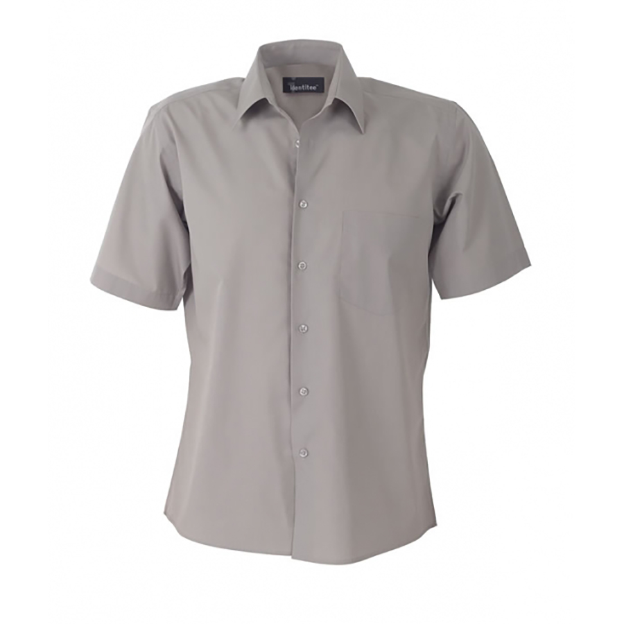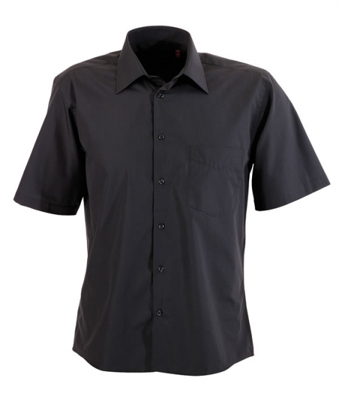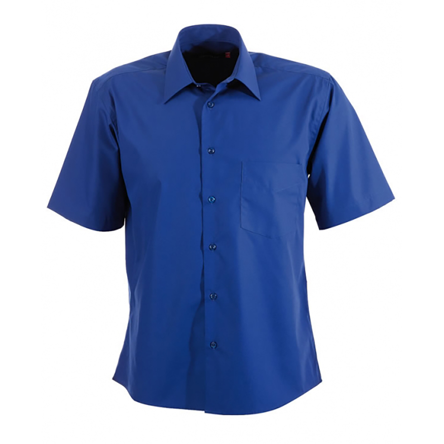 Mens Short Sleeve Business Shirt Cotton rich. 60% cotton 40% polyester. Buttons dyed to match. Gradual curved hem. Single pocket. Classic Cut SIZE RANGE S – 5XL