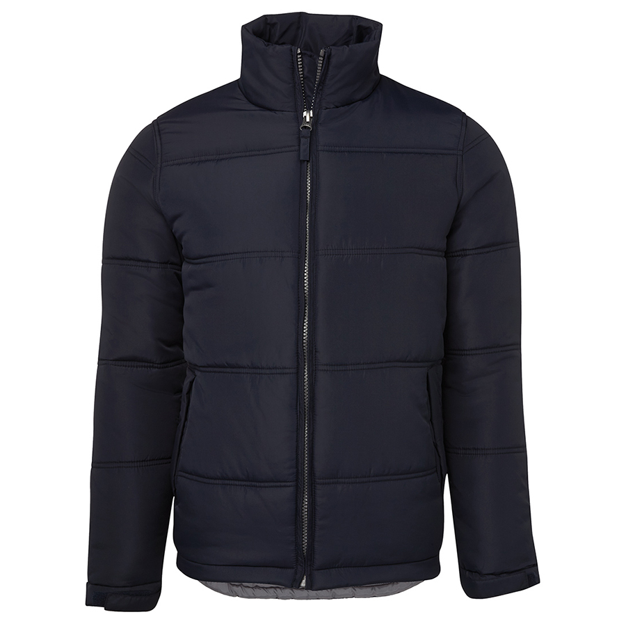 Polyester pongee shell and contrast polyester lining.Extra thick poly fill with horizontal design lines.Chunky front zipper.Two front pockets with water shedding pocket flaps.Back drop tail.Embroidery Zipper. Compatible with JB’s wear Interchangeable zip puller 3CZP 10pk (sold separately) Sizes: 8|10|12|14|S|M|L|XL|2XL|3XL|4XL|5XL