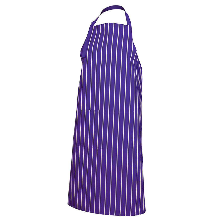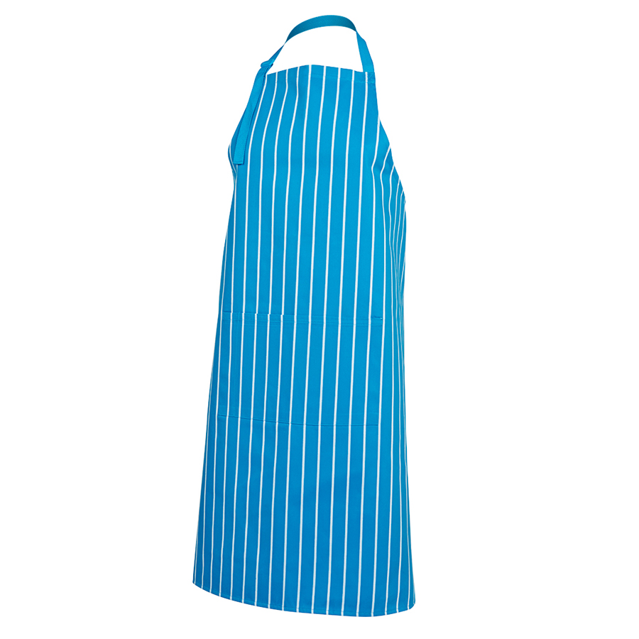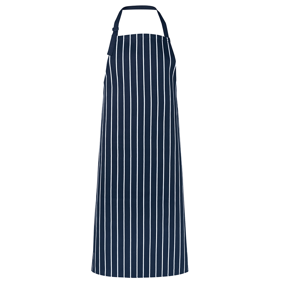 65% Polyester for durability. and 35% Cotton drill for comfort.195gsm yarn dyed stripe fabric.Herringbone adjustable neck strap with slider.Herringbone waist strap.One-size-fits-most.Easy care fabric.86cmx93cm Sizes: BIB 86 x 93cm
