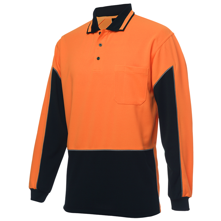 100% Polyester for durability.160gsm micro mesh fabric.JB’s Dri moisture wicking fabric designed to help keep you cool and dry.Complies with Standard AS/NZS 4399:2017 for UPF Protection (UPF 50 ).Complies with Standards AS/NZS 1906.4:2010 AS/NZS 4602.1:2011 Day Only.Jacquard Hi Vis stripe insert collar.Set in sleeves.Reinforced chest pocket with pen insert.Straight hem with side splits.Easy care fabric Sizes: XS|S|M|L|XL|2XL|3XL|4XL|5XL