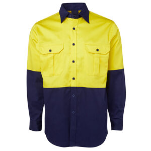 100% Cotton for 100% comfort.190gsm double pre-shrunk twill.Complies with Standard AS/NZS 4399:2017 for UPF Protection (UPF 50 ).Complies with Standards AS/NZS 1906.4:2010 AS/NZS 4602.1:2011 Day Only.Two front pockets with button-down flaps and pen insert.Curved hem with back tail styling.2 needle lap seamed for improved durability.All pressure points bar tacked for extra strength and durability.Two-piece collar Sizes: S|M|L|XL|2XL|3XL|4XL|5XL|6/7XL