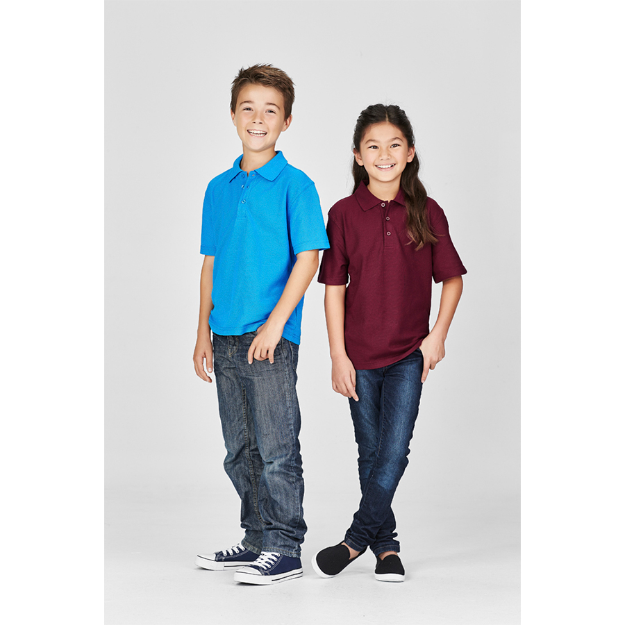 SIZES 4 – 16 FABRIC 65% Polyester 35% Cotton Pique 210 GSM UPF rating – Very Good (light colours) Excellent (dark colours) FEATURES Improved sleeve fit and length Durable top-stitched armhole and twin needle sleeve/hem Knitted flat collar for sleek appearance 3 Button placket with dyed to match pearlised buttons