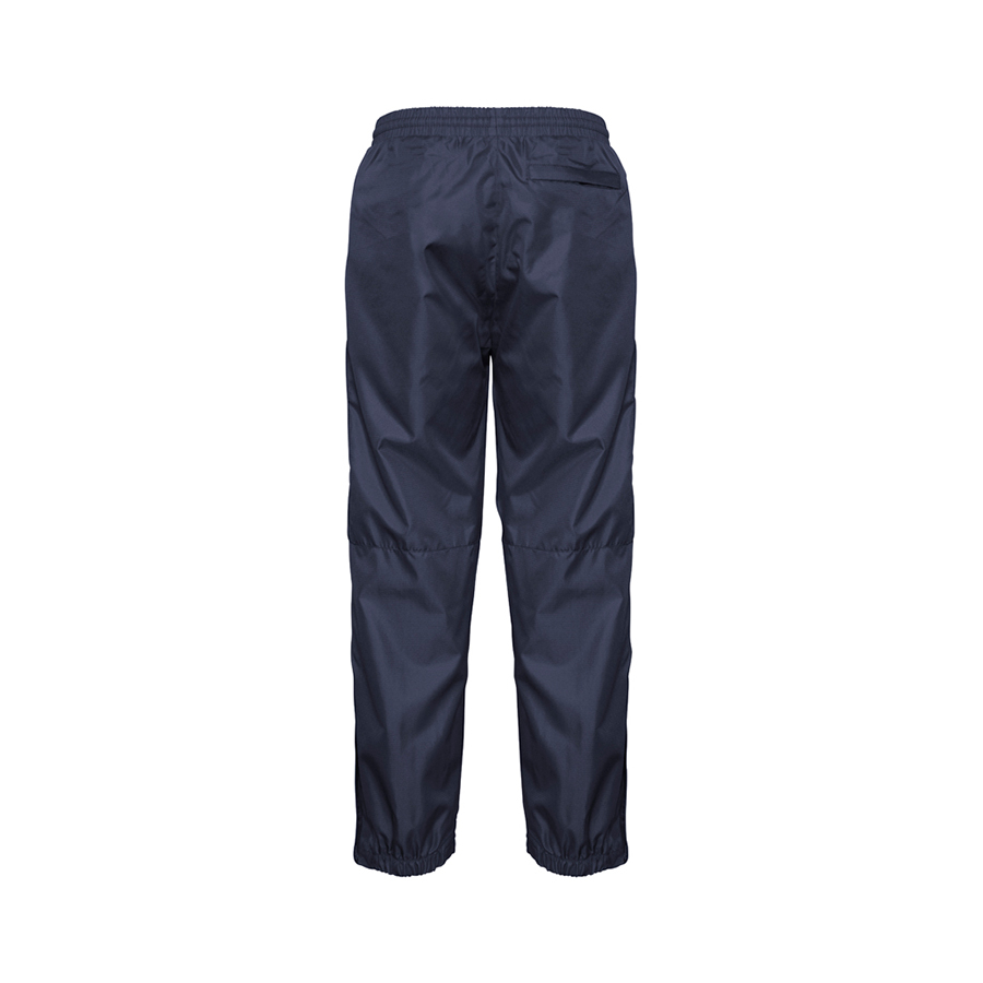 SIZES 4-6 8 – 14 FABRIC Outer: 100% Micro Fibre Jacquard Ripstop with Micro Fibre panels and piping detail Upper leg inner: Single jersey lining Lower leg inner: 100% Polyester Taffeta lining FEATURES Elasticated waist with drawstring 2 Open side pockets and back zipper pocket Bottom leg zipper to approximate knee height to allow pants to be pulled over boots/trainers