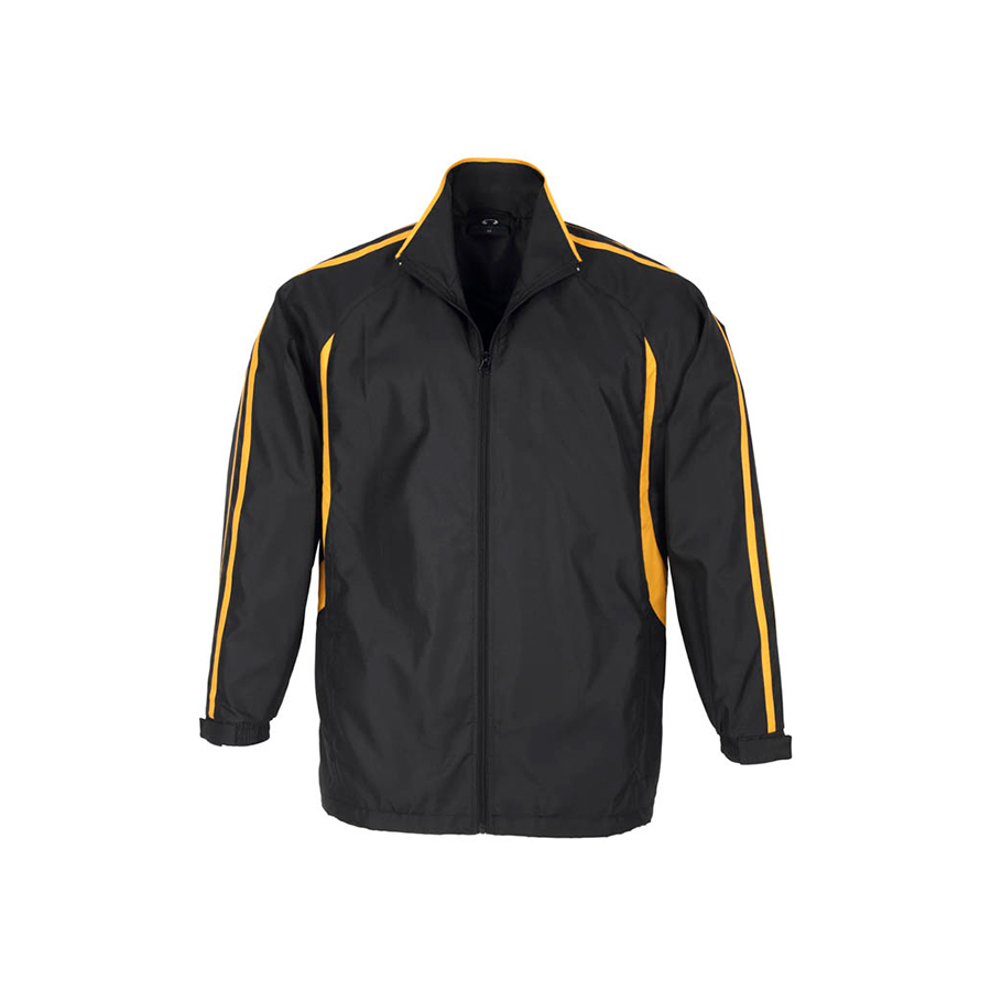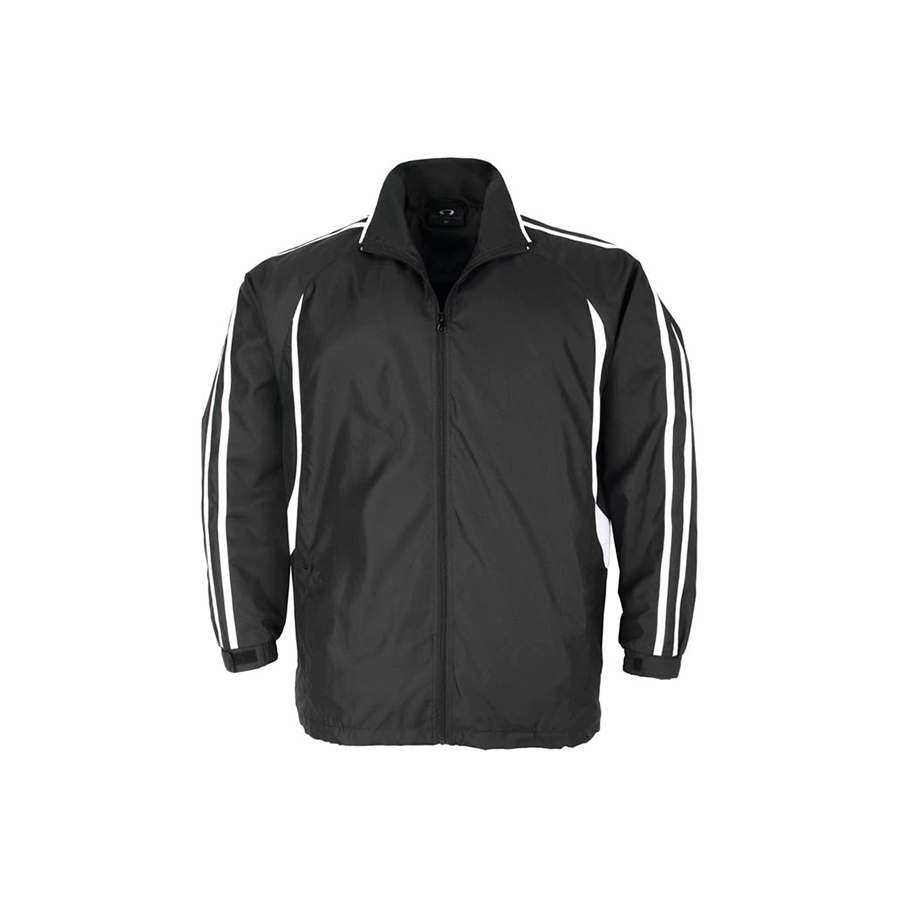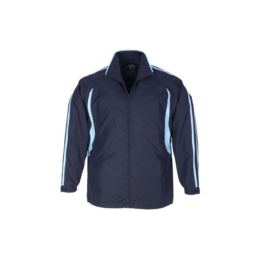 SIZES 4-6 8 – 14 FABRIC Outer: 100% Micro Fibre Jacquard Ripstop with Micro Fibre panels Body inner: Single jersey lining Sleeve inner: 100% Polyester Taffeta lining FEATURES Raglan sleeve top with flash splice and twin stripe detail Full zip front with two zippered pockets Zipper access for embroidery Elasticated sleeve cuffs with adjustable flap
