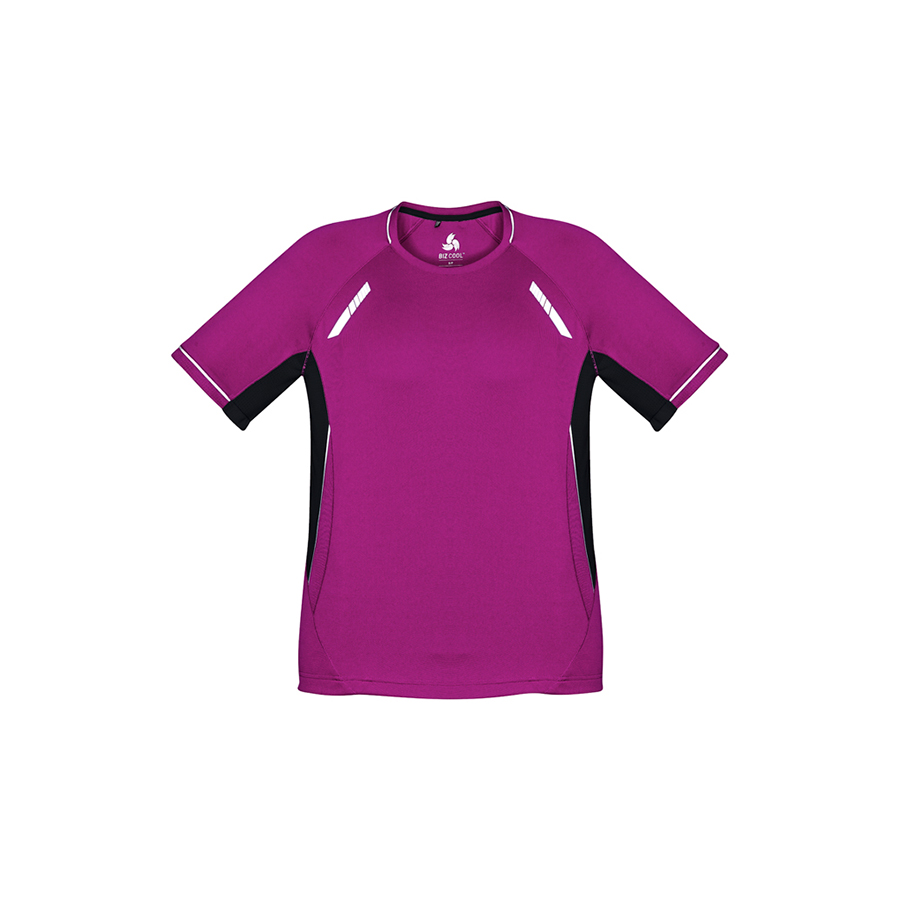 SIZES 4 – 16 FABRIC 100% BIZ COOL™ Micro Polyester 155 GSM UPF rating – Excellent FEATURES Silver reflective trims help you stand out Dynamic design with bold colour contrast Mesh panels for greater ventilation where you need it most Comfortable crew neck Raglan sleeve allows better range of movement