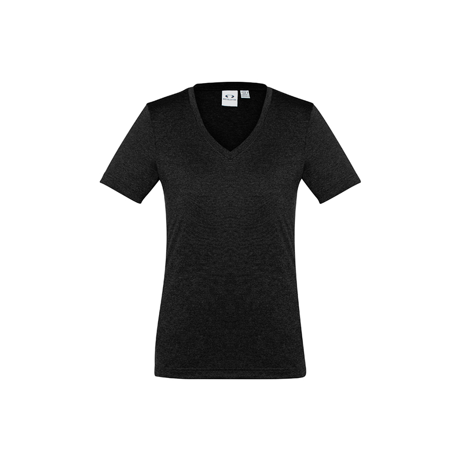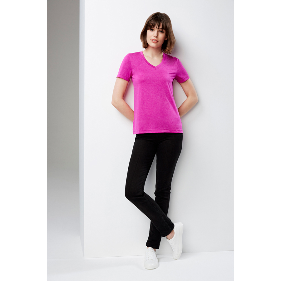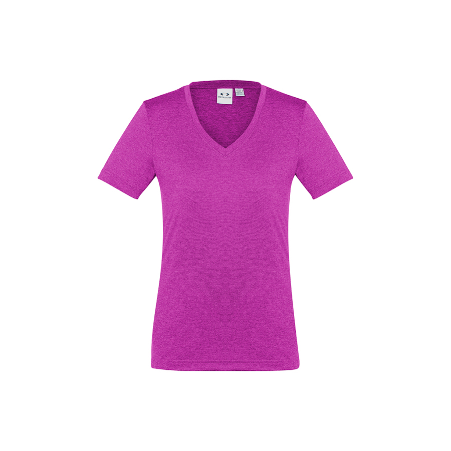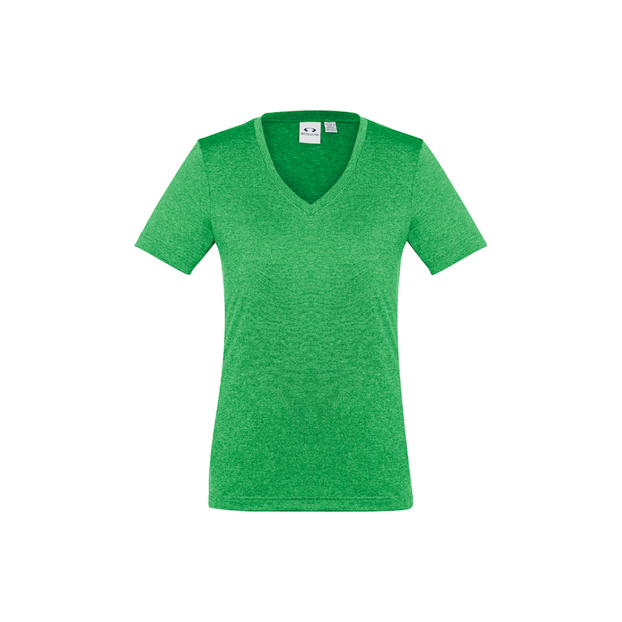 SIZES 6 – 24 FABRIC 100% BIZ COOL™ Cotton-feel Micro Polyester 160 GSM UPF rating – Good FEATURES No-fuss anti-shrink anti-fade fabric has a cotton-like feel that keeps you cool and dry Heathered marle effect fabric for a modern athletic look Ladies style features a flattering v-neck