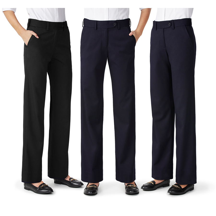 SIZES 4 – 30 FABRIC 65% Polyester 35% Viscose – Teflon? stain resistance fabric Durable easy care fabric FEATURES Unique Flexi-band feature maximises waist comfort and fit Flat front with 2 angled pockets 2 back welt pockets Generous 5cm hem allowance for longer length alteration