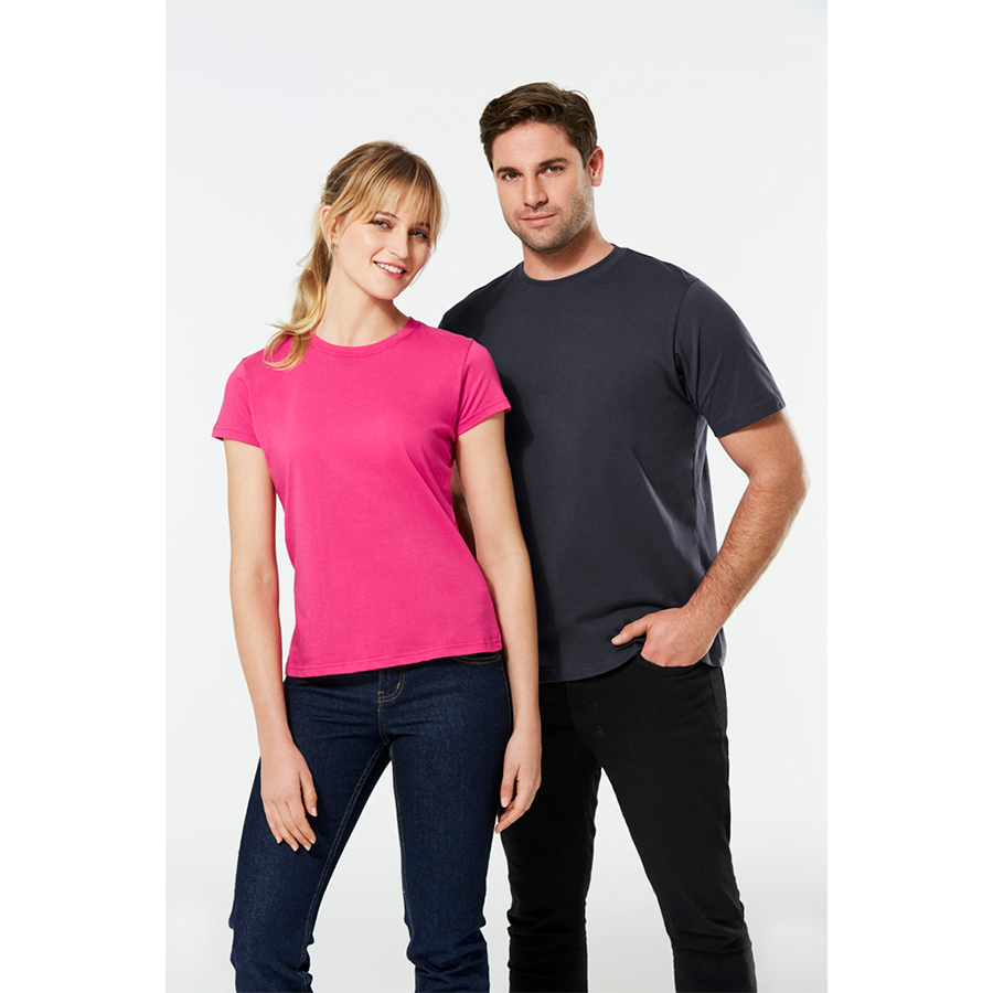 SIZES 6 – 24 FABRIC 100% Premium Combed Cotton Fluoro Orange and Yellow-Lime: 65% Polyester 35% Cotton 185 GSM FEATURES Twin needle sleeve and body hem Ribbed elastane neck opening for stretch and shape recovery Easy tear-away label to facilitate promotional re-branding Side seams for reduced twisting and ease of alignment for printing Mobilon tape across shoulders for comfort and shape retention
