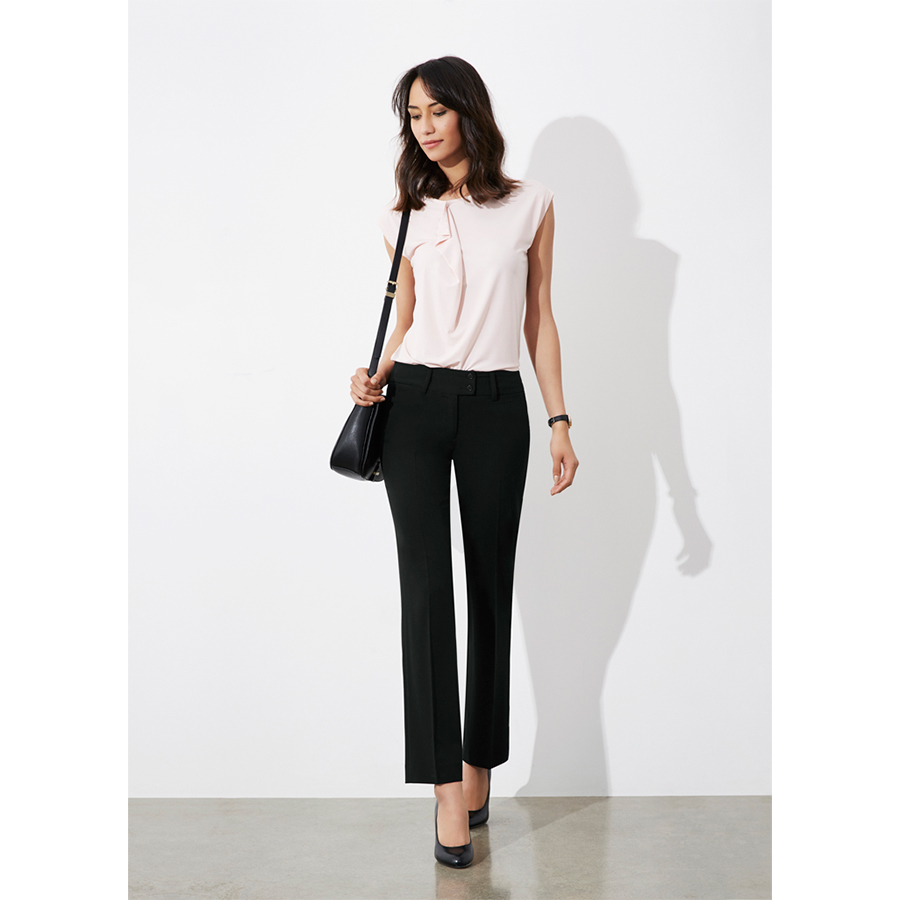 KATE IS THE PERFECT PANT FOR YOU IF: you find pants fit at the waist but are too loose at the hip you have a slimmer thigh you have a petite or slender build SIZES 4 – 16 FABRIC 4-way Stretch Comfort 62% Polyester 34% Viscose 4% Elastane FEATURES Mid-rise with a flattering wider waistband Low profile front and back pockets Classic straight leg shape Finished inseam length: 82cm