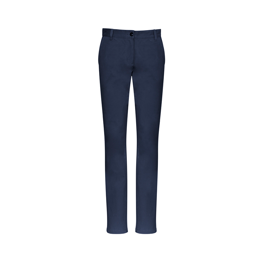 SIZES 6 – 26 FABRIC 98% Cotton 2% Elastane stretch fabric 250 GSM FEATURES Garment washed for a soft lived-in feel Comfortable modern mid-rise fit Flat front with tapered leg styling 2 Side angled pockets 2 back welt pockets COLOURS Available in Navy or Dark Stone