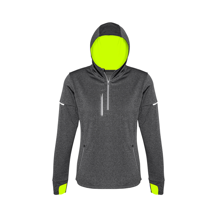 SIZES XS – 2XL FABRIC 100% BIZ COOL™ Breathable Polyester FEATURES Sweat-wicking stretch fabric perfect as a mid-layer Reflective trims and fluoro Hood Lining/Cuff to maximise visibility Thumb holes keep sleeves down for added warmth