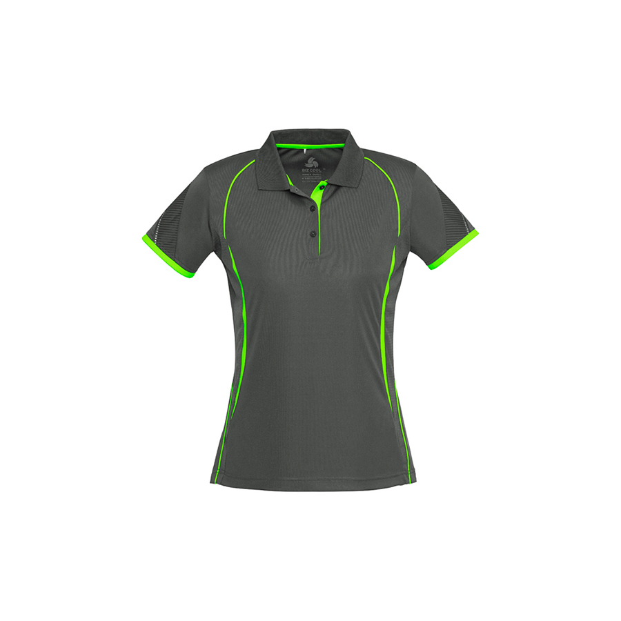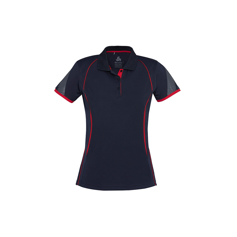 SIZES 8 – 24 FABRIC 100% BIZ COOL™ Polyester Sports Interlock 155 GSM UPF rating – Excellent FEATURES Grid mesh underarm panels for breathability Unique sleeve print feature Contrast panels and piping Knitted collar with contrast placket