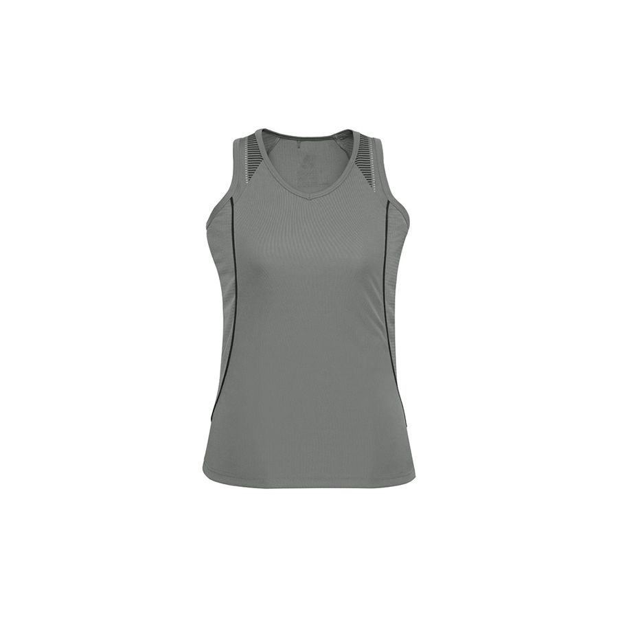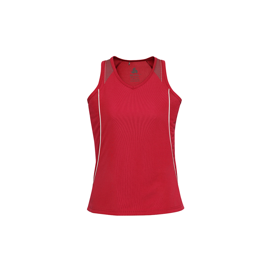 SIZES 8 – 20 FABRIC 100% BIZ COOL™ Polyester Sports Interlock 155 GSM UPF rating – Excellent FEATURES Grid mesh underarm panels for breathability Unique shoulder print feature Contrast panels and piping V-Neck and armhole binding Racer back and shaped styling