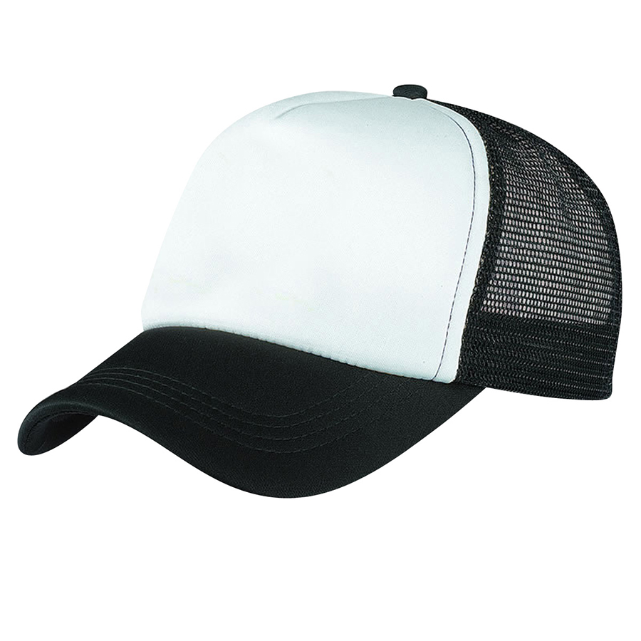 Classic American Indie … keep cool with mesh side and back panels. Pre-curved peak|Padded cotton sweatband|Adjustable plastic tab at rear|5 panels|Padded polyester front panel with nylon mesh side and back panels