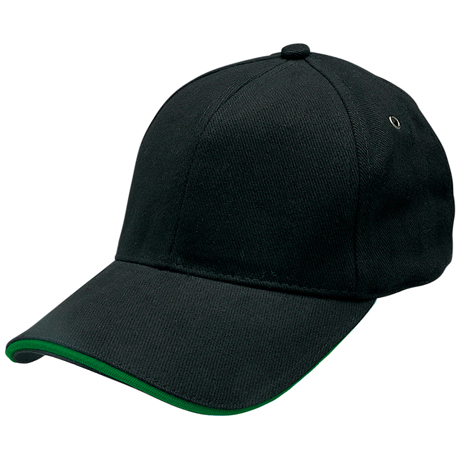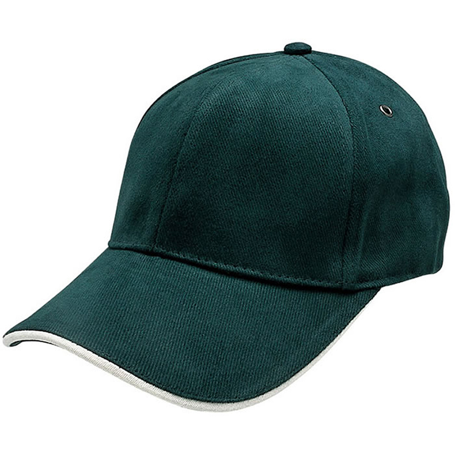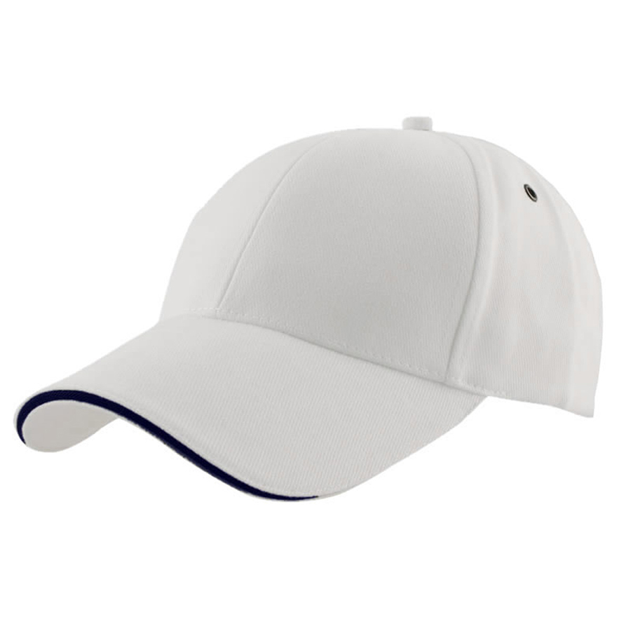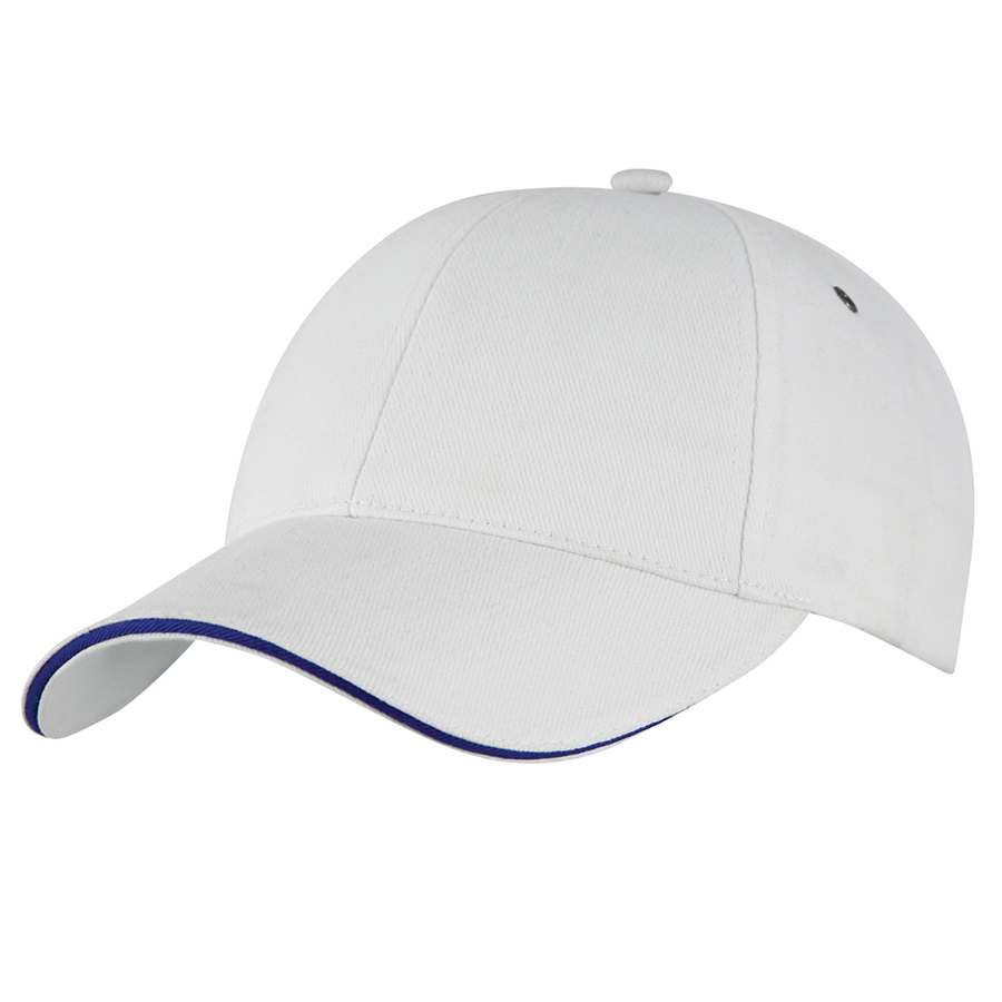Subtle contrast in the sandwich peak sets this cap apart from a crowd. Heavy brushed cotton with contrast sandwich peak|Gunmetal eyelets|Structured 6 panel design|Padded cotton sweatband|Fabric strap with gunmetal buckle and tuck-in return|Pre-curved peak