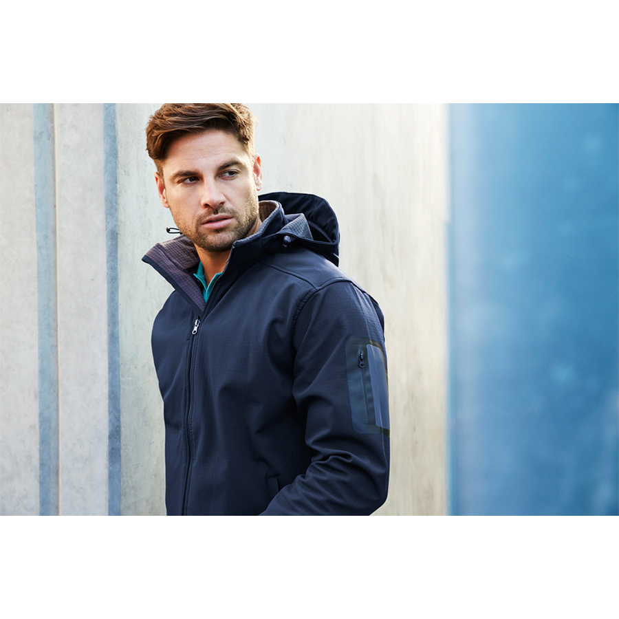 SIZES S – 3XL 5XL FABRIC Outer: 96% Polyester 4% Elastane – 4 Way Stretch Breathable Ripstop Shell Lining: 100% Polyester – Waffle Fleece with Bonded Membrane FEATURES Adjustable cuffs with laser cut welded pocket on sleeve Full zip front with storm flap and elastic drawstring hem Audio port access Detachable adjustable hood Concealed zippered front pocket and internal mobile pocket BIZ TECH™ TECHNOLOGY FEATURES Water Repellent rating – 3000mm inner membrane Breathability rating – 1000g/m? Windproof