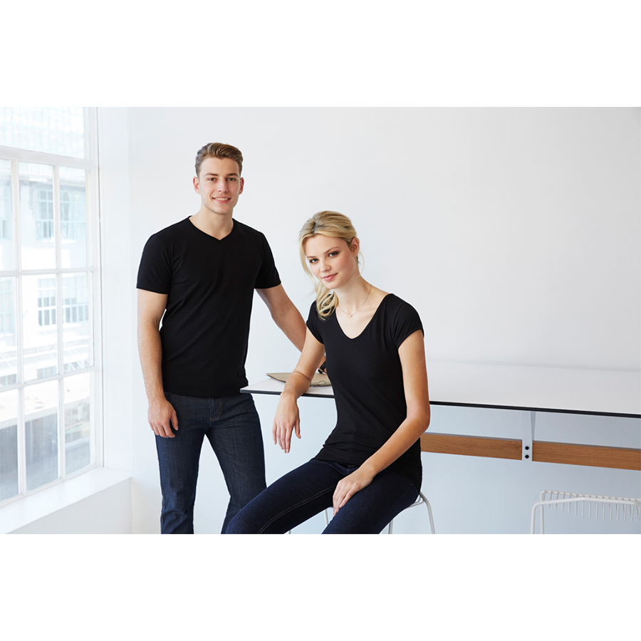 SIZES S – 2XL FABRIC 95% Cotton 5% Elastane Stretch fabric 190 GSM UPF rating – Excellent FEATURES Fine edged V-Neck binding Available in Black only