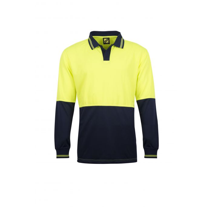 NCC HI VIS TWO TONE FOOD INDUSTRY LONG SLEEVE MICROMESH POLO WITH NO POCKET OR BUTTONS