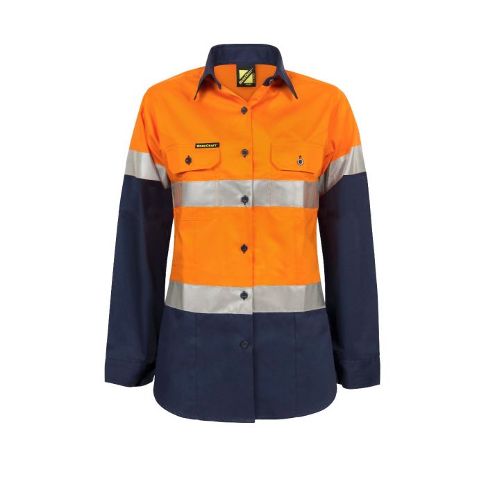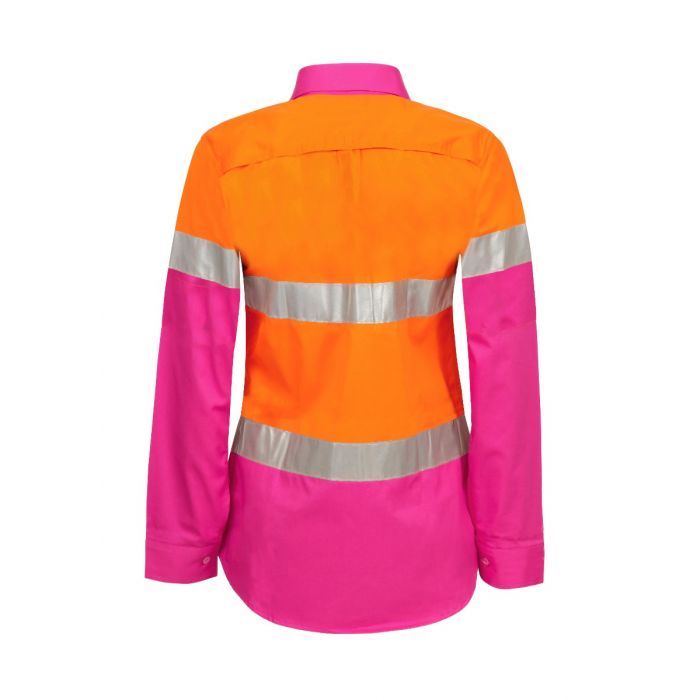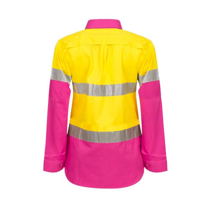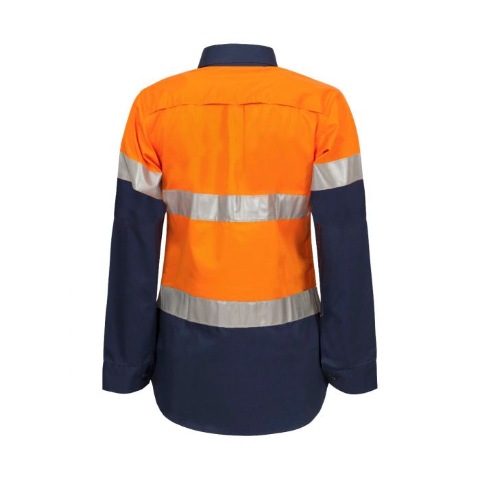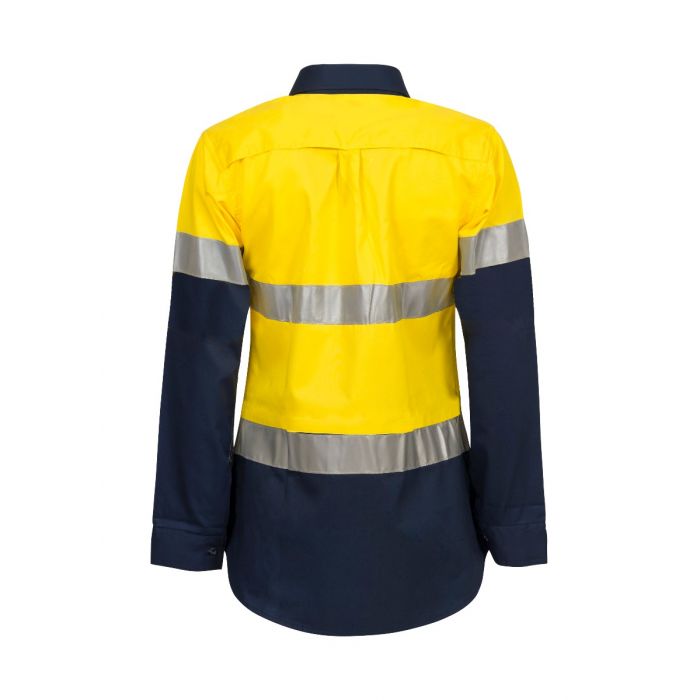NCC LADIES LIGHTWEIGHT HI VIS TWO TONE LONG SLEEVE VENTED COTTON DRILL SHIRT WITH CSR REFLECTIVE TAPE