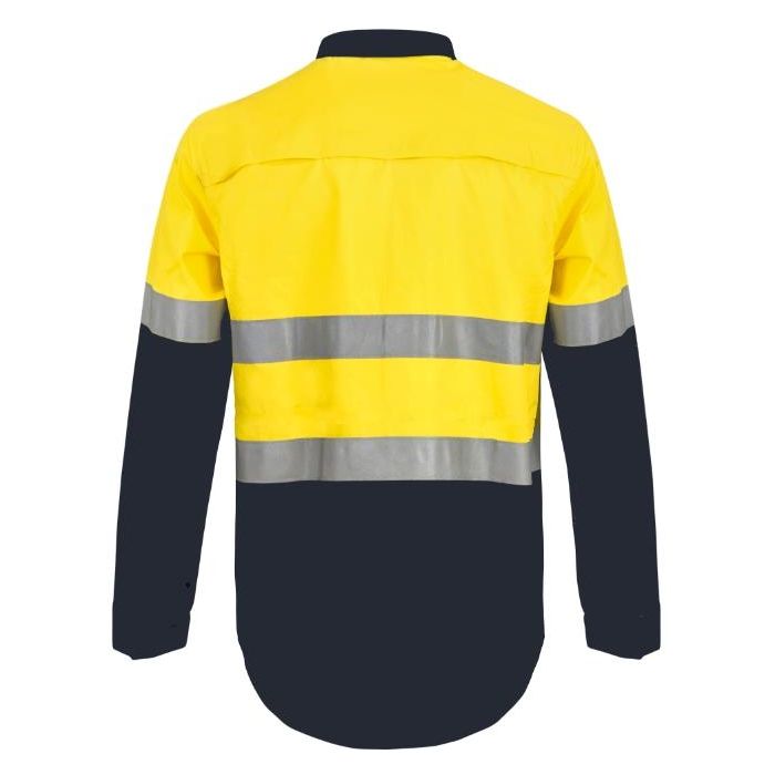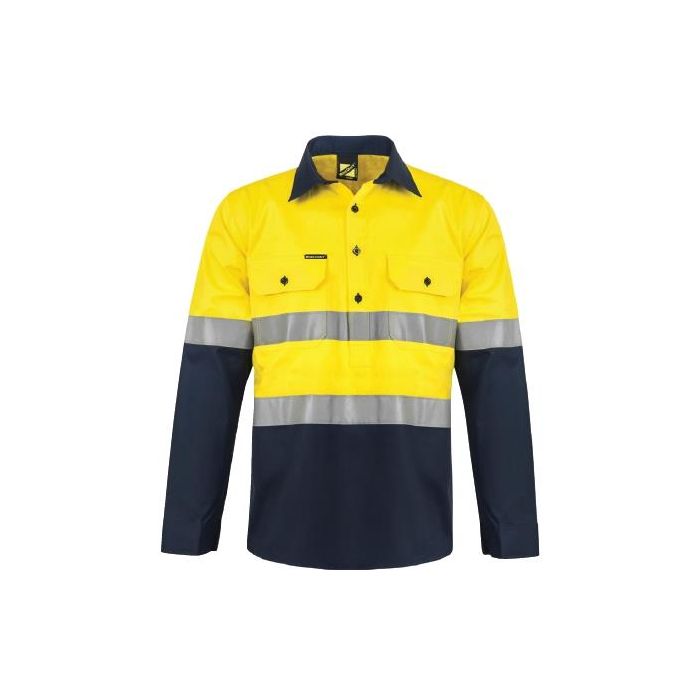 NCC LIGHTWEIGHT HI VIS TWO TONE HALF PLACKET VENTED COTTON DRILL SHIRT WITH SEMI GUSSET SLEEVES AND CSR REFLECTIVE TAPE