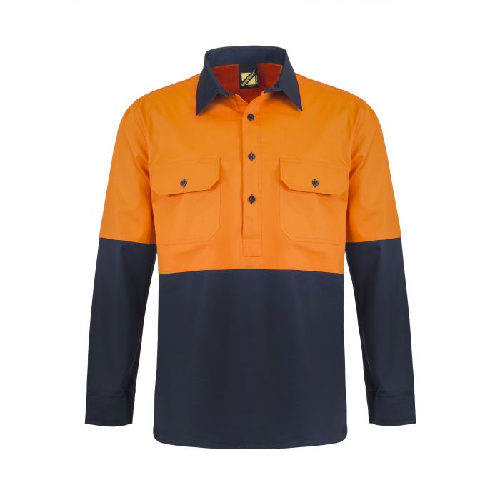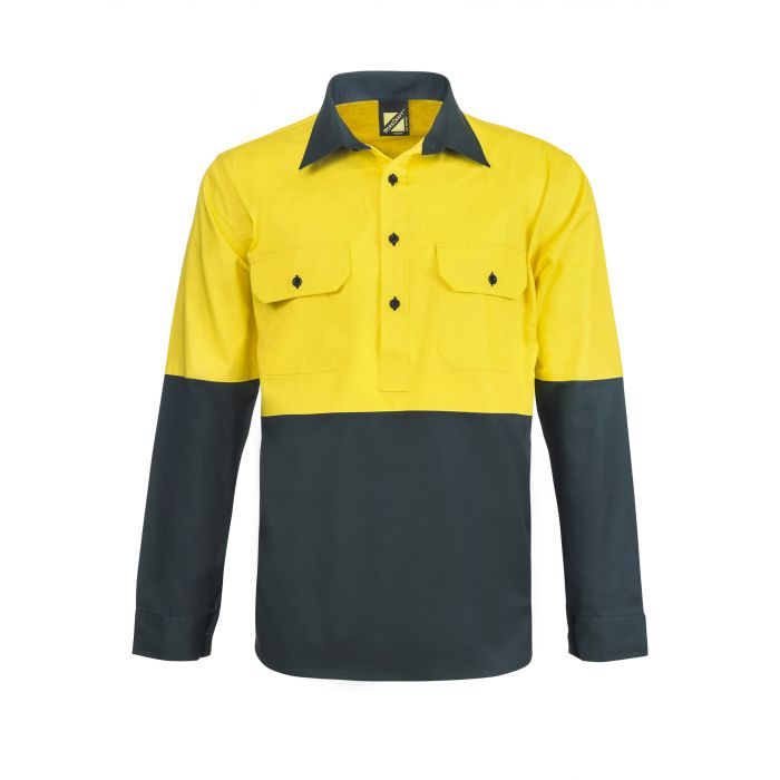 NCC LIGHTWEIGHT HI VIS TWO TONE HALF PLACKET VENTED COTTON DRILL SHIRT WITH SEMI GUSSET SLEEVES