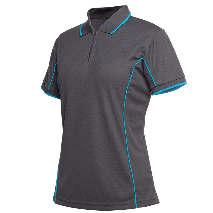 100% Polyester.160gsm pique knit fabric.JB’s Podium Cool moisture wicking fabric designed to help keep you cool and dry.Ladies style features the JB’s placket in a distinctly stylish 1-button design.Straight hem with side splits.Easy care fabric.Quick drying.Complies with standard AS/NZS 4399:1996 for UPF Protection. Sizes: 8|10|12|14|16|18|20|22|24