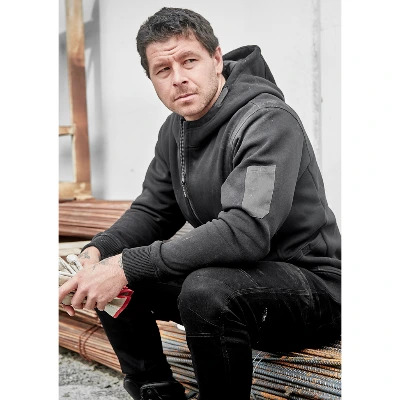 Sizes: XXS – 5XL, 7XL; Fabric: 55% Cotton, 45% Polyester, 320 GSM; Features: Heavy weight fabric with soft brushed lining for comfort and warmth, Extra heavy weight ribbed knit on hem and cuffs, Full zip through opening, Woven arm pen pocket in contrast fabric, Safety drawstring to prevent catching, 2 Side hip pockets with quick close tape closure for mobile phone and tools, 2 Kangaroo pockets to keep your hands warm even on the coldest days, Mesh hood lining, Reinforced at all key stress points with bar tacks;