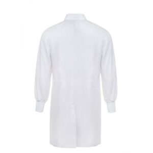 NCC FOOD INDUSTRY LONG LENGTH DUSTCOAT WITH MANDARIN COLLAR. CONTRAST TRIMS ON COLLAR
