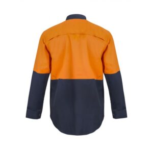 NCC LIGHTWEIGHT HI VIS TWO TONE LONG SLEEVE VENTED COTTON DRILL FOOD INDUSTRY SHIRT WITH PRESS STUDS AND NO POCKETS