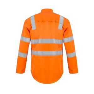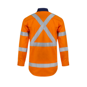 NCC HI VIS TWO TONE FRONT LONG SLEEVE COTTON DRILL SHIRT WITH X PATTERN CSR REFLECTIVE TAPE