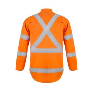 NCC LIGHTWEIGHT HI VIS LONG SLEEVE VENTED COTTON DRILL SHIRT WITH X PATTERN CSR REFLECTIVE TAPE